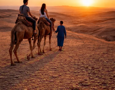 Escape the city and experience the stunning Agafay Desert just outside Marrakech. With Morocco Atlas Desert, enjoy a private and unforgettable sunset tour: ride a camel across the desert, feel the peaceful atmosphere, and watch the sun set over the rocky landscape.